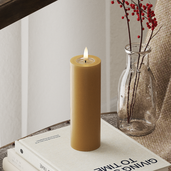 Тази красива LED блок светлина в Горчично е създаден с нашата специална повърхност Wetlook ™, която го прави да изглежда като истинска свещ. Повърхността изглежда точно като горната част на свещ, която е била, придавайки много специално автентично усещане. С височина 400 см, той се вписва перфектно в повечето домове, където разпространява уют и топлина с естествения си вид.