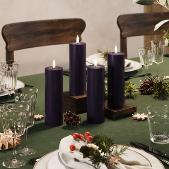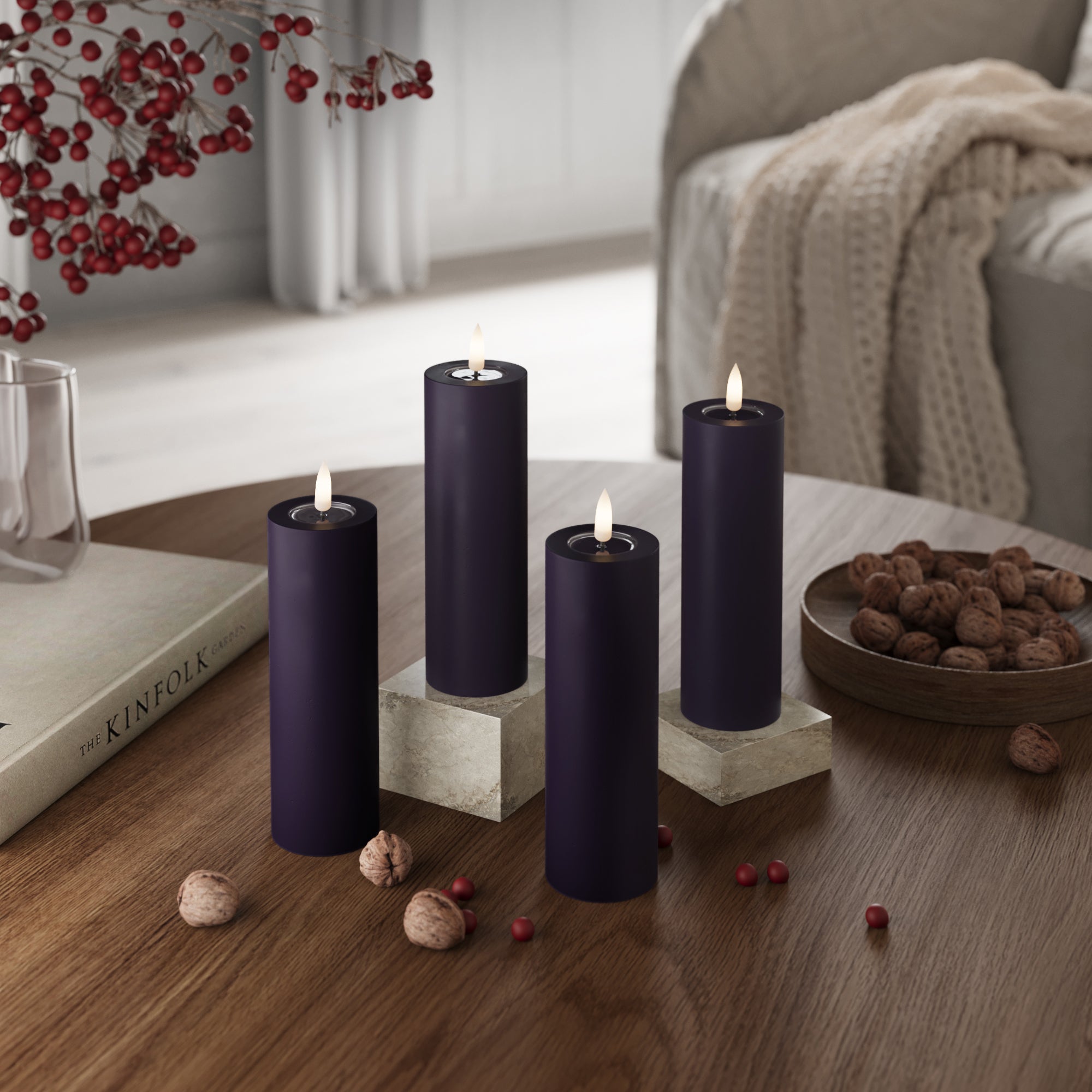 LED-Blockkerzen Ø 5 x 15 cm Dunkellila – 4 Stück
