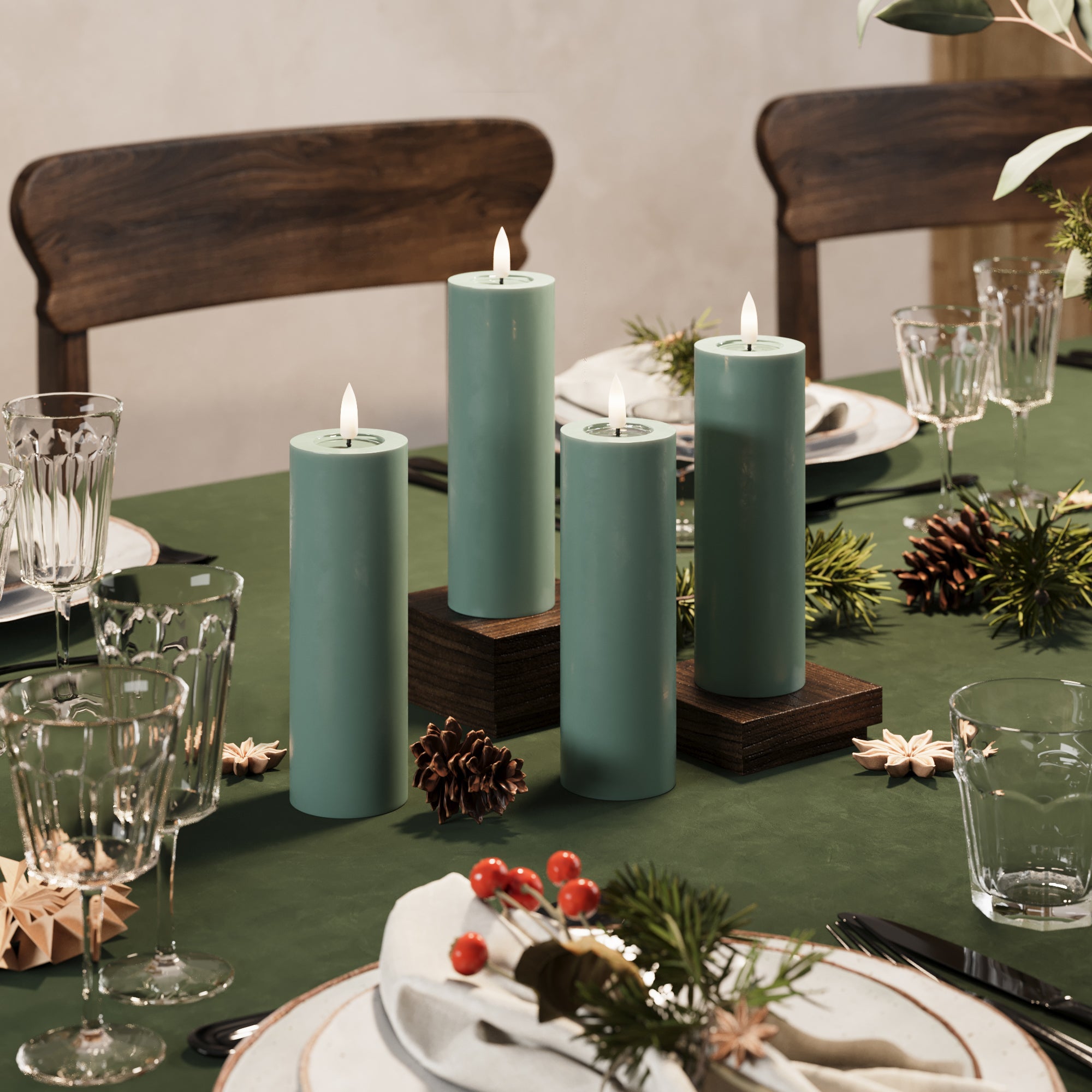 LED-Blockkerzen Ø 5 x 15 cm Jadegrün + 4 Stück