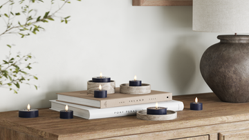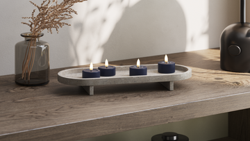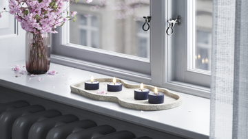 For et roligt helhedsindtryk kan du samle lysene på et fad og variere højderne, mens farverne holdes i samme palette.