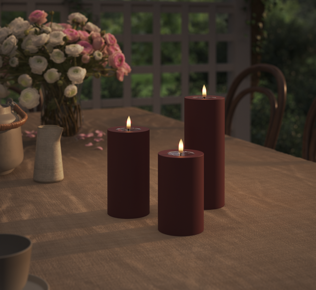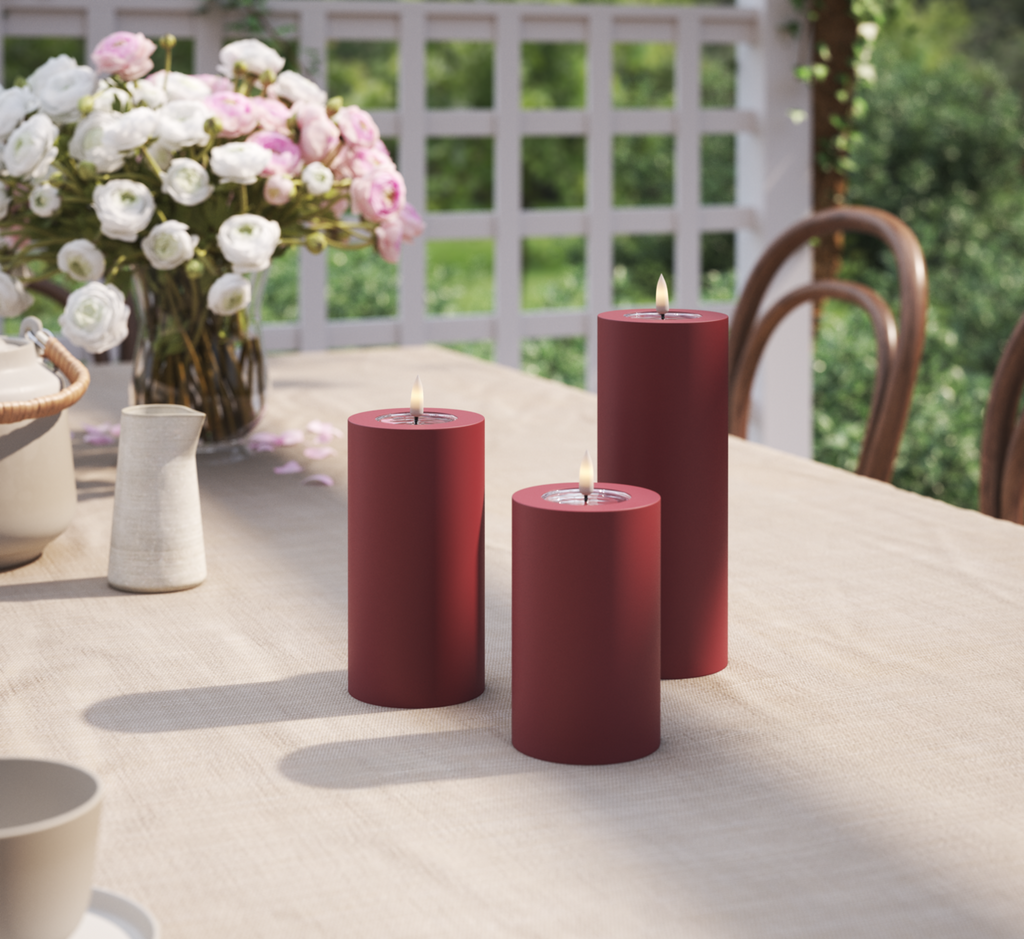 Outdoors LED Pillar candle Ø 10 x 15 cm Bordeaux