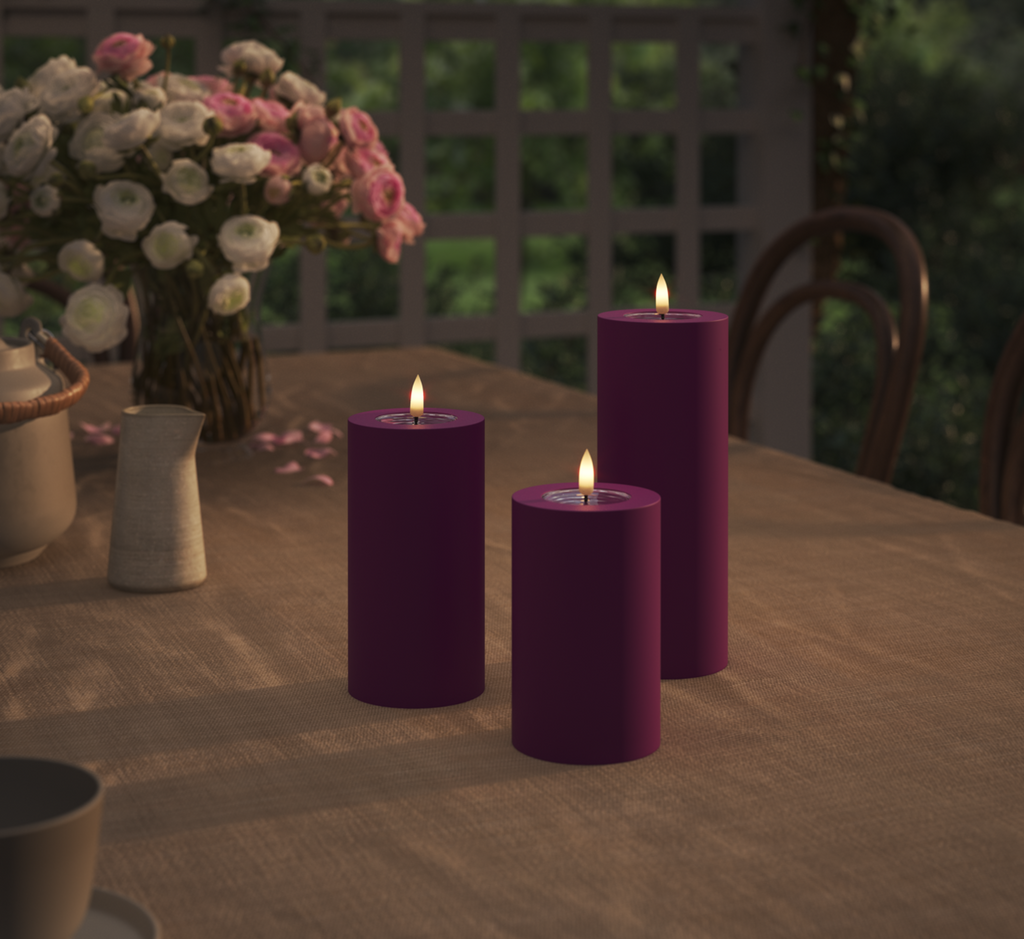 LED al aire libre Vela pilar Ø 7.5 x 12.5 cm Violeta