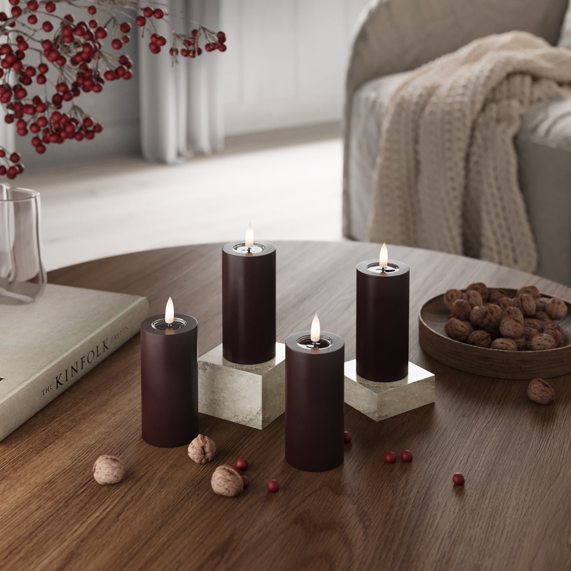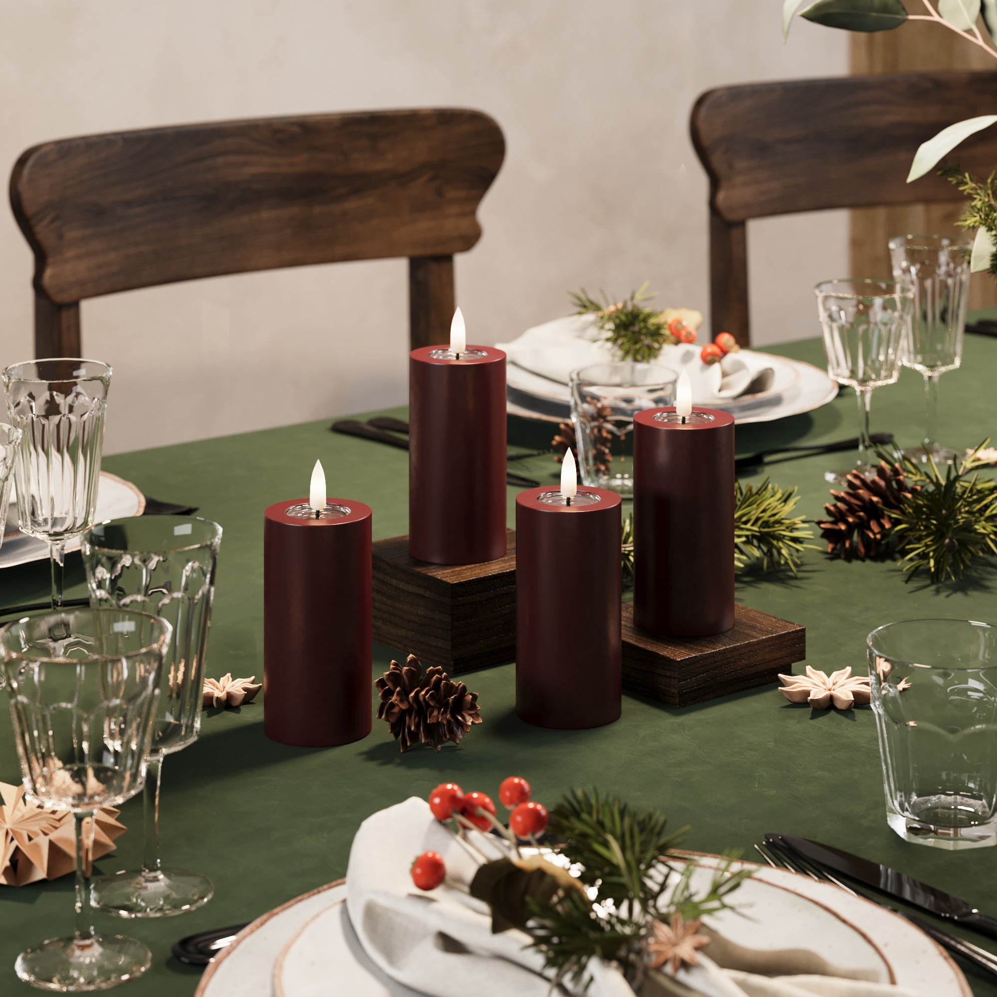 LED Pylväskynttilä Ø 5 x 10 cm Burgundi - 4 kpl