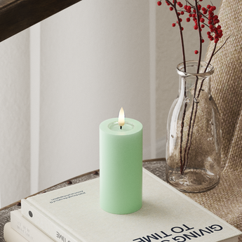 Dette elegante LED Blokkerer lys inn Mint Tilbyr en virkelig 'ekte flamme' effekt som er like naturtro som et ekte stearinlys. Med en høyde på 10 cm og en diameter på 5 cm hver er LED Blokker stearinlys nøye laget av stearinlys og harpiks, utstyrt med en naturtro 3D -flamme og et unikt belegg av harpiks øverst. Denne spesielle kombinasjonen skaper ikke bare en autentisk følelse, men gir også det særegne "våte utseendet" som etterligner smeltet lys perfekt.
