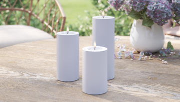 Deluxe Homeart Buiten LED Stompkaarsen Ø 10 x 20cm Vergrijsd blauw LED buitenlicht Stompkaarsen 2
