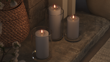 Bloklys er perfekte til dekorationer. Saml dem på et fad, i en lanterne eller i vindueskarmen for en rolig stemning.