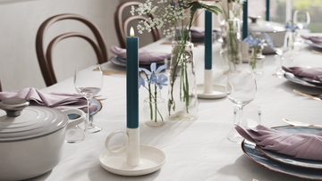 Kronelys er oplagte til middagsbordet i slanke lysestager, hvor de giver et let og elegant udtryk – både til hverdag og når der dækkes op til gæster.