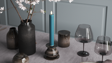 LED kronelys i farven petroleum.