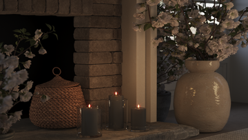 Brug bloklys i små grupper med forskellige højder. Det giver dybde og et gennemført udtryk i indretningen.