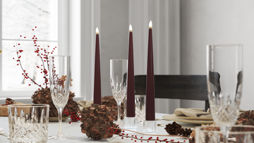 Esta articulação elegante Vela afilada em Borgonha Oferece um efeito de 'chama real' da vida real que é tão realista quanto uma vela real. Com uma altura de 38 cm e um diâmetro de 2 cm é uma junta Vela afilada Cuidadosamente feito de verniz, equipado com uma chama 3D realista e um revestimento exclusivo de resina na parte superior. Essa combinação específica não apenas cria um sentimento autêntico, mas também dá ao distinto 'olhar molhado' que imitando as velas derretidas perfeitamente.